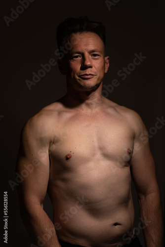 © Collins Photography, Fototapeta premium Sexy portrait of muscular handsome topless male isolated against a black background
