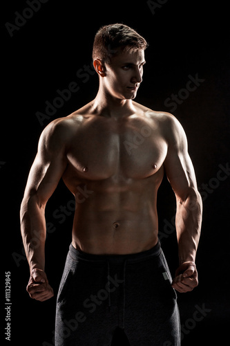 Fototapeta premium Sexy shirtless bodybuilder posing,