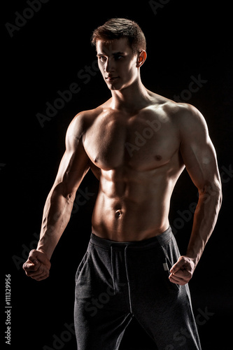 Fototapeta premium Sexy shirtless bodybuilder posing,
