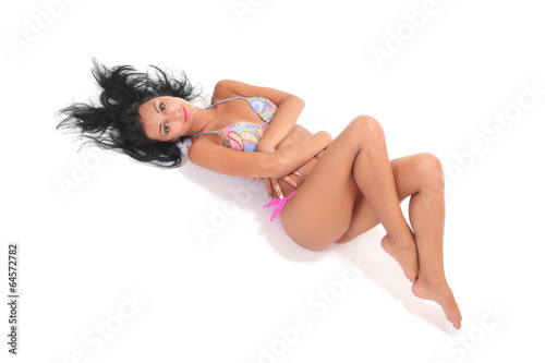 Obraz premium Sexy tan woman in bikini isolated on white background