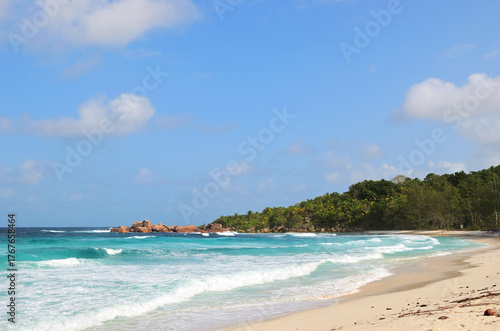 Naklejka premium Seychelles islands, La Digue, Anse Cocos beach