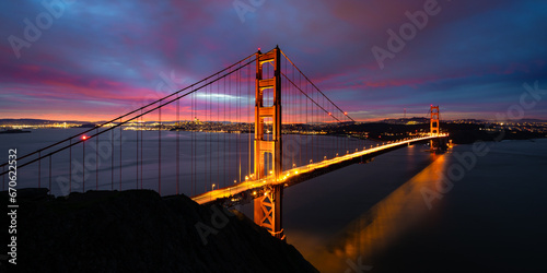 Obraz premium SF Golden Gate Bridge - Colorful Sunrise From Marin Headlands