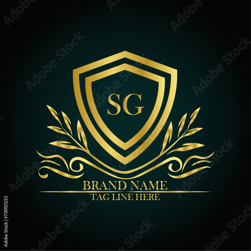 Obraz premium SG luxury letter logo template in gold color. Elegant gold shield icon. Modern vector Royal premium logo template vector