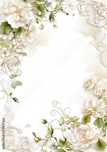 © Sagar, Fototapeta premium shabby chic scrapbook paper with white roses and lace on a damask background