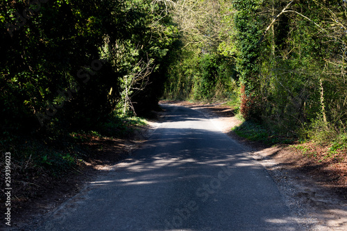 Naklejka premium Shaded tree lined single track country lane in rural Hampshire