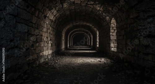 Fototapeta premium Shadow filled ancient dungeon corridors beneath the earth