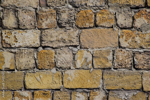© FOlga, Obraz premium shadow from the blocks of limestone shell. Wall texture background