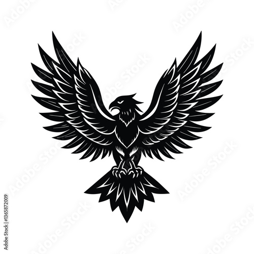 © Suzan, Obraz premium Shadow hawk bird on white background.