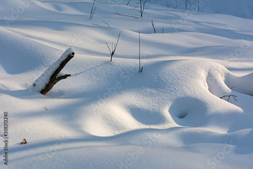 © Yurii Shelest, Obraz premium Shadow of a tree in the snow on a winter day