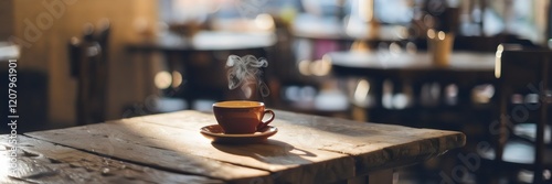 © happie, Obraz premium Shadow of coffee cup on rustic table in cafe