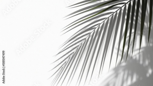 © Phetthanousack, Obraz premium Shadow of palm leaf creating a beautiful silhouette on a clean white background, tropical, palm leaf