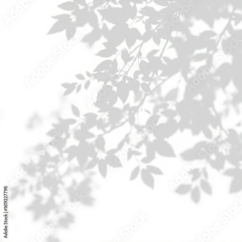 © Duho, Fototapeta premium shadow overlay effect. Gray shadow of leaves isolated on white background. Plant foliage leaf shadow light effect. Mockup Blurred tree branch shadow. Ideal for summer spring design elements PNG