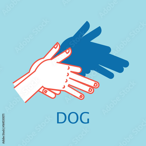 Obraz premium Shadow Theater. Hands gesture like Dog. Vector illustration of Shadow Hand Puppet.
