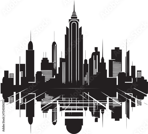 Fototapeta premium Shadowed Cityscape Chic Black Art Deco Vector Gothic Geometry Sophisticated Vector Design