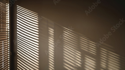 Obraz premium Shadows cast by blinds create an intricate pattern on the wall in a softly...