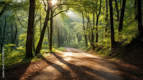 © vectorwin, Obraz premium shadows sun shining through trees