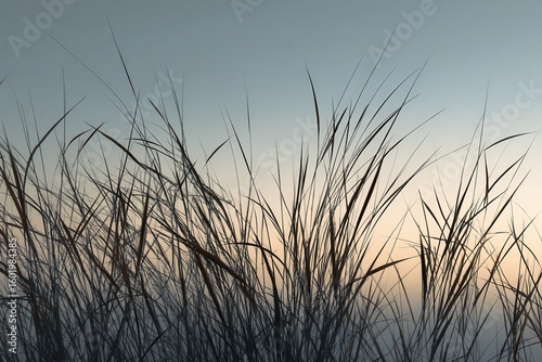 © VolumeThings, Fototapeta premium Shadowy shapes of parched grass against the sky