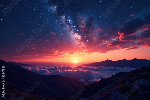 © chaiwat, Naklejka premium Shallow depth of field focusing on the starry sky, daybreak, night, sky