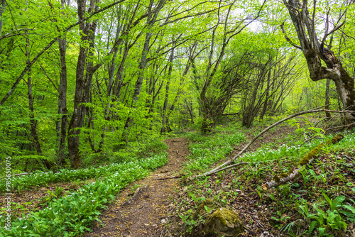 Fototapeta premium shallow mountain river, staritsa and nature walks, spring day