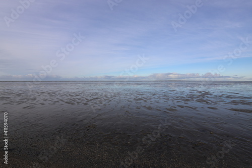 Obraz premium Shallow waters and a beautiful panoramic view - Wadden Sea, The Netherlands.