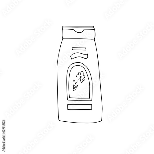 © Дарья Артемова, Fototapeta premium Shampoo jar, cosmetics,vector black-and-white line graphics, isolated on a white background