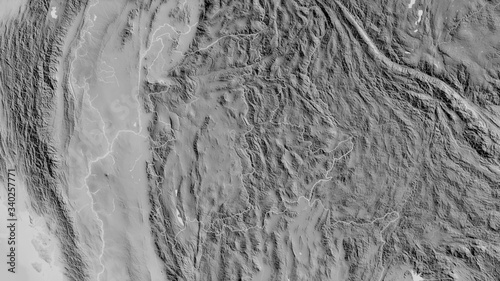 Fototapeta premium Shan, Myanmar - outlined. Grayscale
