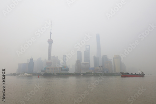 © YuanGeng, Fototapeta premium Shanghai Bund w Haze, Szanghaj, Chiny