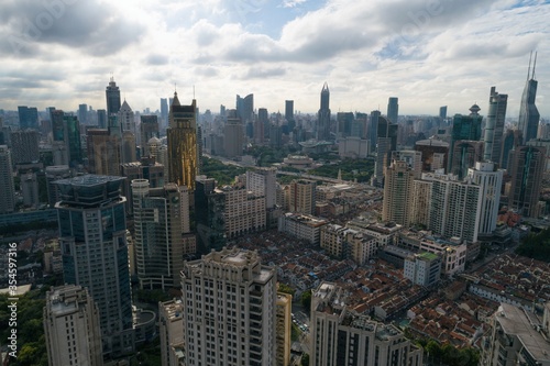 © Chawran, Fototapeta premium Shanghai city in China aerial drone photo