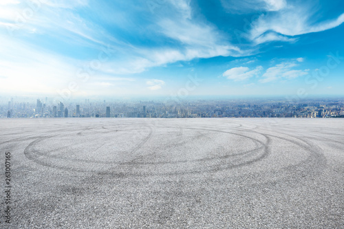Naklejka premium Shanghai city skyline and asphalt race track ground scenery,high angle view