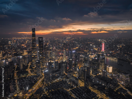 © 曈 苏, Obraz premium Shanghai city skyline at night