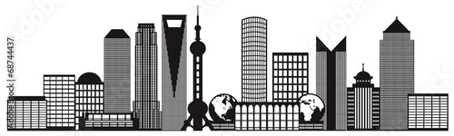 Obraz premium Shanghai City Skyline Black and White Outline Illustration