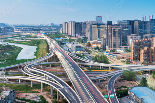 Obraz premium shanghai interchange overpass and elevated road in nightfall