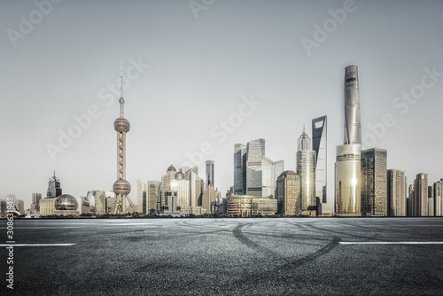 © xu, Obraz premium Shanghai lujiazui financial center night road platform