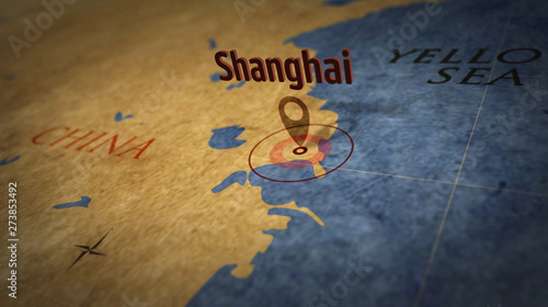 © PerlaStudio, Obraz premium Shanghai on retro map