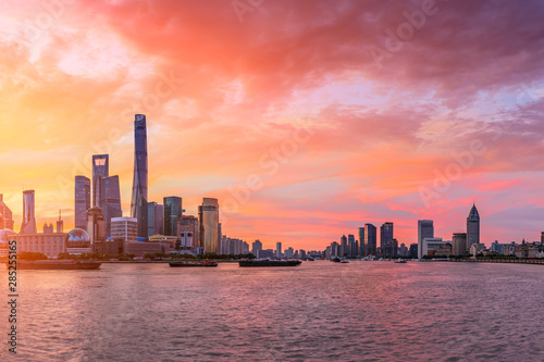 Fototapeta premium Shanghai skyline and modern buildings at sunrise,China.