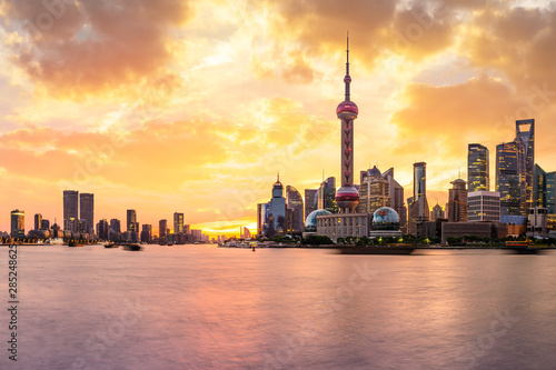 © ABCDstock, Fototapeta premium Shanghai skyline and modern urban buildings at sunrise,China.
