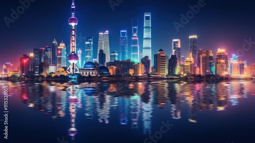 Fototapeta premium Shanghai Skyline at Night
