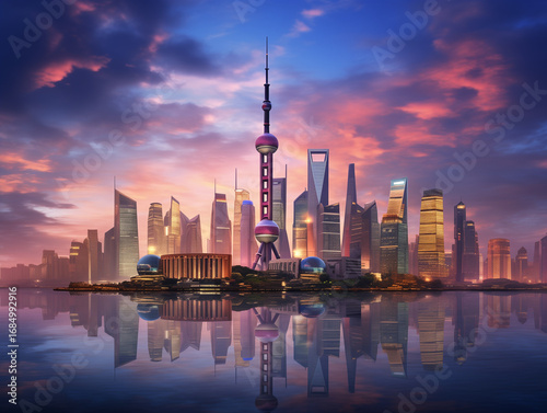 © muhammad, Fototapeta premium shanghai skyline at sunset