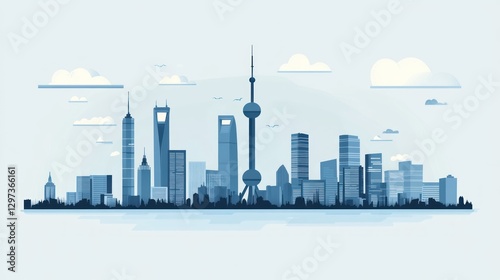 Obraz premium Shanghai skyline illustration, simple cityscape, city view, modern...