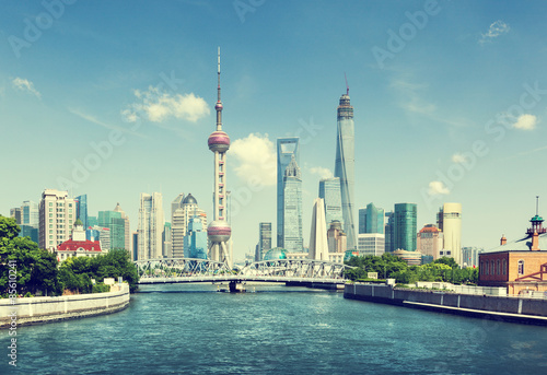 © Iakov Kalinin, Naklejka premium Shanghai skyline in sunny day, China