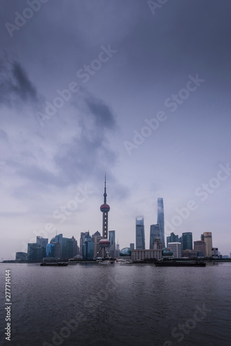 © Theerayoot, Obraz premium Shanghai skyline in the morning, Also showing the recently completed Shanghai Tower (the 2nd tallest building in the world)Asia,China.