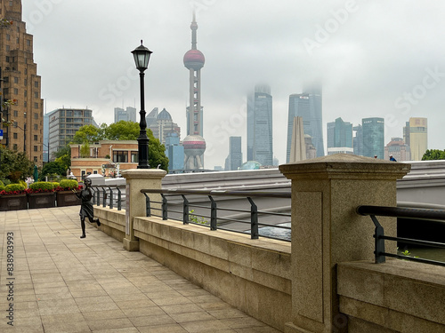 © lelechka, Fototapeta premium Shanghai skyline with historical Waibaidu bridge, center of Shanghai city, China