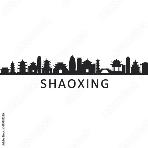 © godsfavoritearts, Naklejka premium Shaoxing with China City Skyline Silhouette.