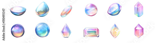 © Kaynat, Obraz premium Shape liquid drops with colorful gradient. Abstract 3d fluid objects geometric shape. vector illustration