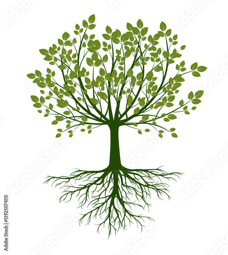 Obraz premium Shape of green Tree with Leaves and Roots. Vector outline Illustration.