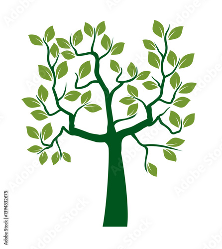 Obraz premium Shape of green Tree with Leaves and Roots. Vector outline Illustration.