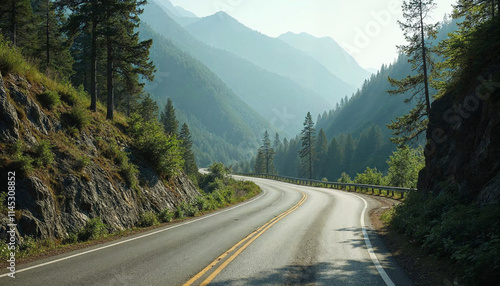 © Mamer, Fototapeta premium Shaped road going through dense trees, image pictured from above