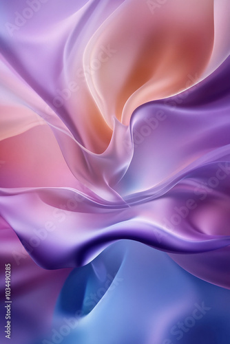 © Sheikhah, Obraz premium Shapes in pastel pink, blue, purple gently swirl, creating glowing transitions. Smooth flowing forms highlight dynamic visual movement, capturing abstract beauty.
