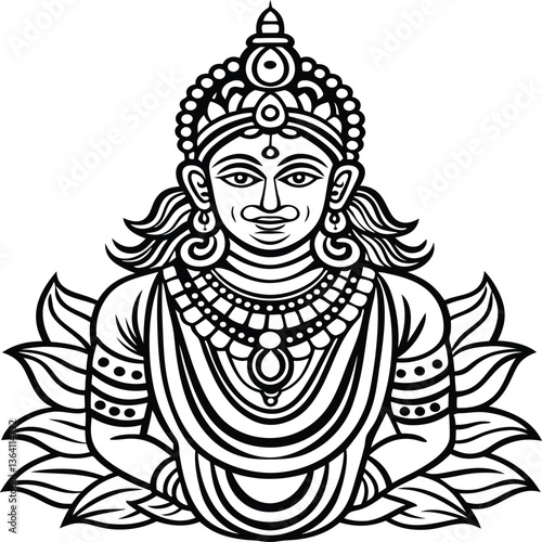 © Zahurul, Fototapeta premium Sharad Purnima God Design Line Art Vector