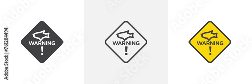 Obraz premium Shark Area Hazard Warning. Danger of Shark Attacks. Marine Predator Alert Sign